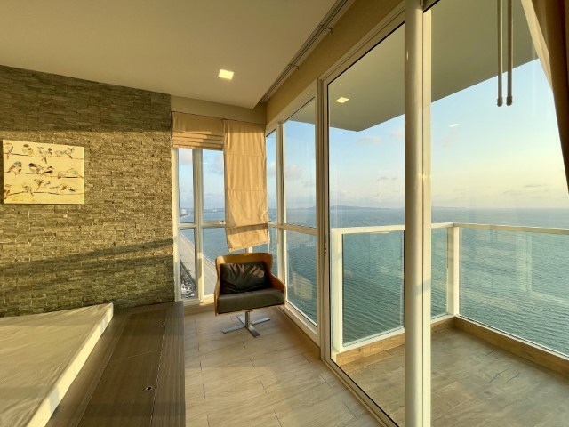 Beachfront modern style, 2+1 bedrooms apartment on floor 46th with fantastic frontal sea view, 2 bathroom, fully furnished with high quality furnishing and decorated, European kitchen, 24 hours security, fitness room, communal swimming pool, sauna, steam room, lobby, pool table