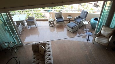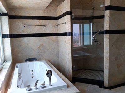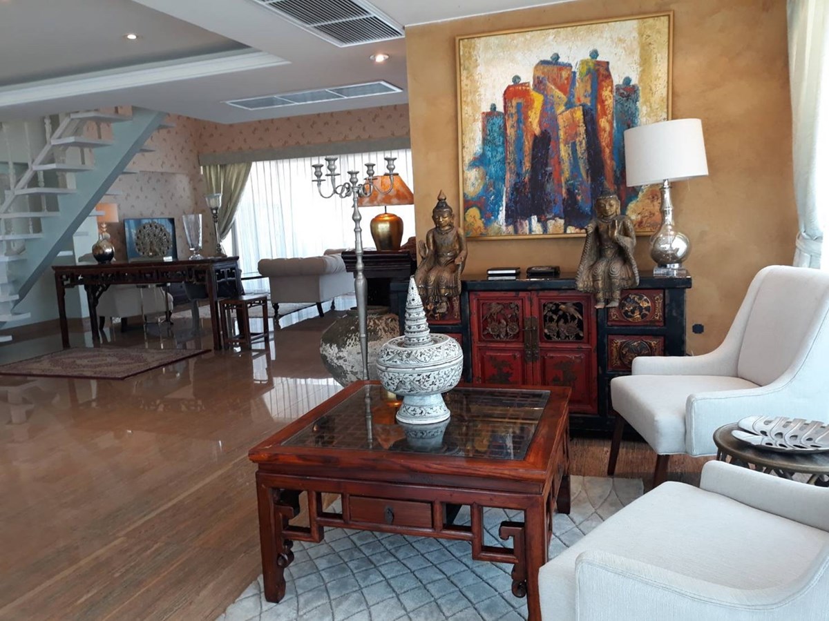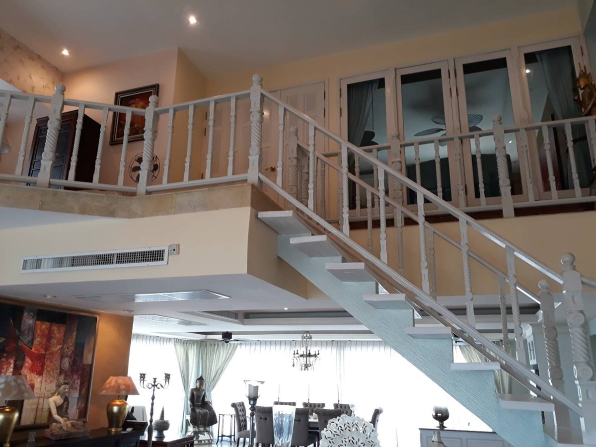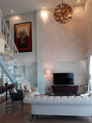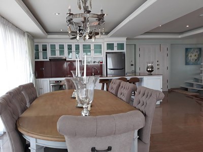 This super luxurious duplex ,living area 220 Sqm, top floor penthouse ,located at Chateau Dale , Jomtien area, 1 bedroom, large living room of 120 Sqm ,European kitchen ,fully luxurious decorated by Chic Republic, foreign name, sea and pool view, 24 hours security, large communal swimming pool, garden, Baht bus.