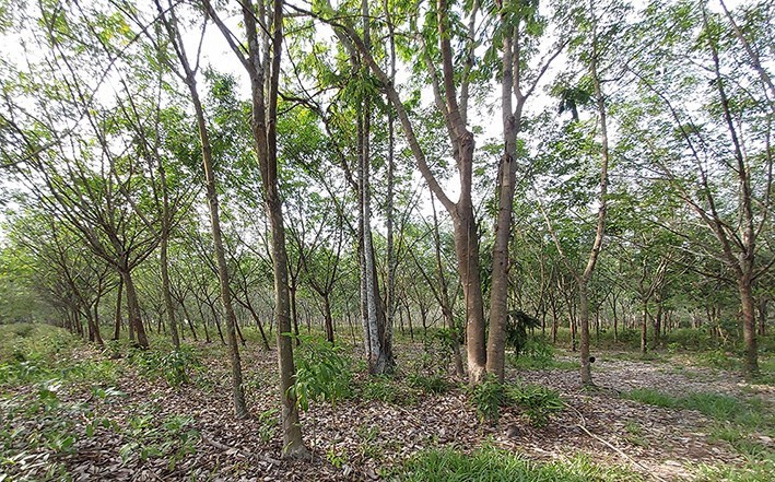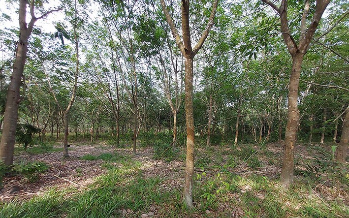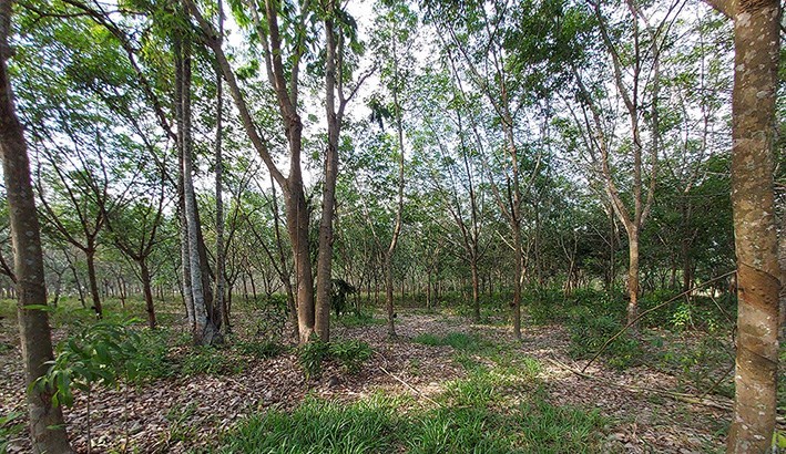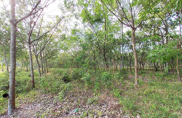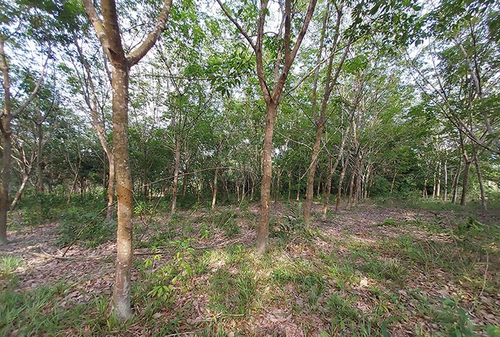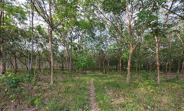 Very cheap land that is now used for rubber tree cultivation in Chakdon, Klaeng, Rayong. Directly by concrete road. Only 600,000 Bath / rai.