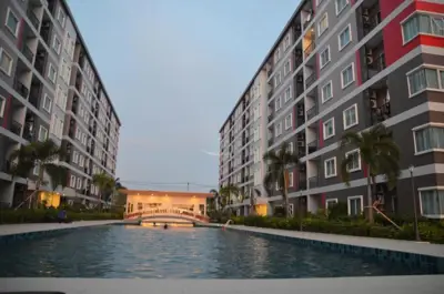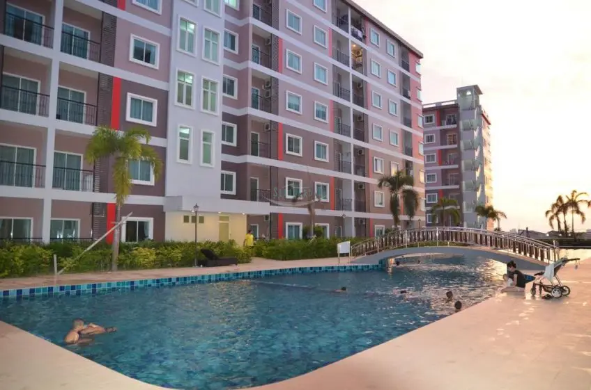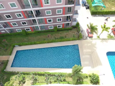 Chockchai Condominium 2 A two bedroom apartment of 50 sq.m. at a modern low rise condominium, located in Soi Khao Noi, East Pattaya, close to Sukhumvit Road and to convenience stores, shops, restaurants and entertainment. This two bedroom, 2 bathroom apartment is on floor 7, is fully furnished, fully air conditioned, with European kitchen, living area, TV in living room and one bedroom. The apartment is furnished and decorated to modern, western style. The apartment is offered for sale and rent. The title deed is registered in Thai ownership. For more information and to arrange a viewing, please contact us now.Facilities