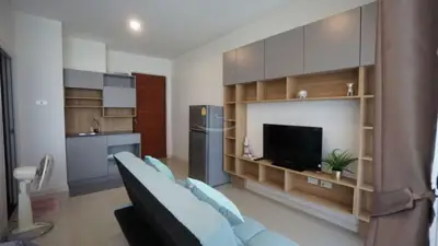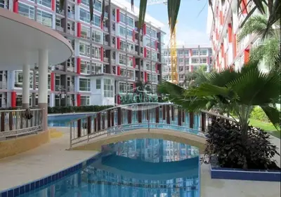 Chockchai Condominium This new development is located around 2 km from Sukhumvit in East Pattaya. This is the first condominium project in the area and will be attractive to many long term residents. It offers a nice modern design to the building, and incorporating a lagoon style swimming pool, and poolside gymnasium. The studio apartment is on floor 7 of the building and is fully furnished. The owner has decorated this apartment very well indeed, and boasts lovely built in features, stylish wallpaper, LCD TV and good furniture. Siam Country Club road offers ample shopping with a selection of stores, mini marts, and a 7 day fresh market close by. This location offers very easy routes back into Pattaya City, or to the major highway routes for the neighbouring provinces, the International airport and central Bangkok. Offered for rent fully furnished for 7,000 Baht for a 1-year contract. Offered for sale for 1.45 Mil. Baht. For more information, please contact us now.Facilities