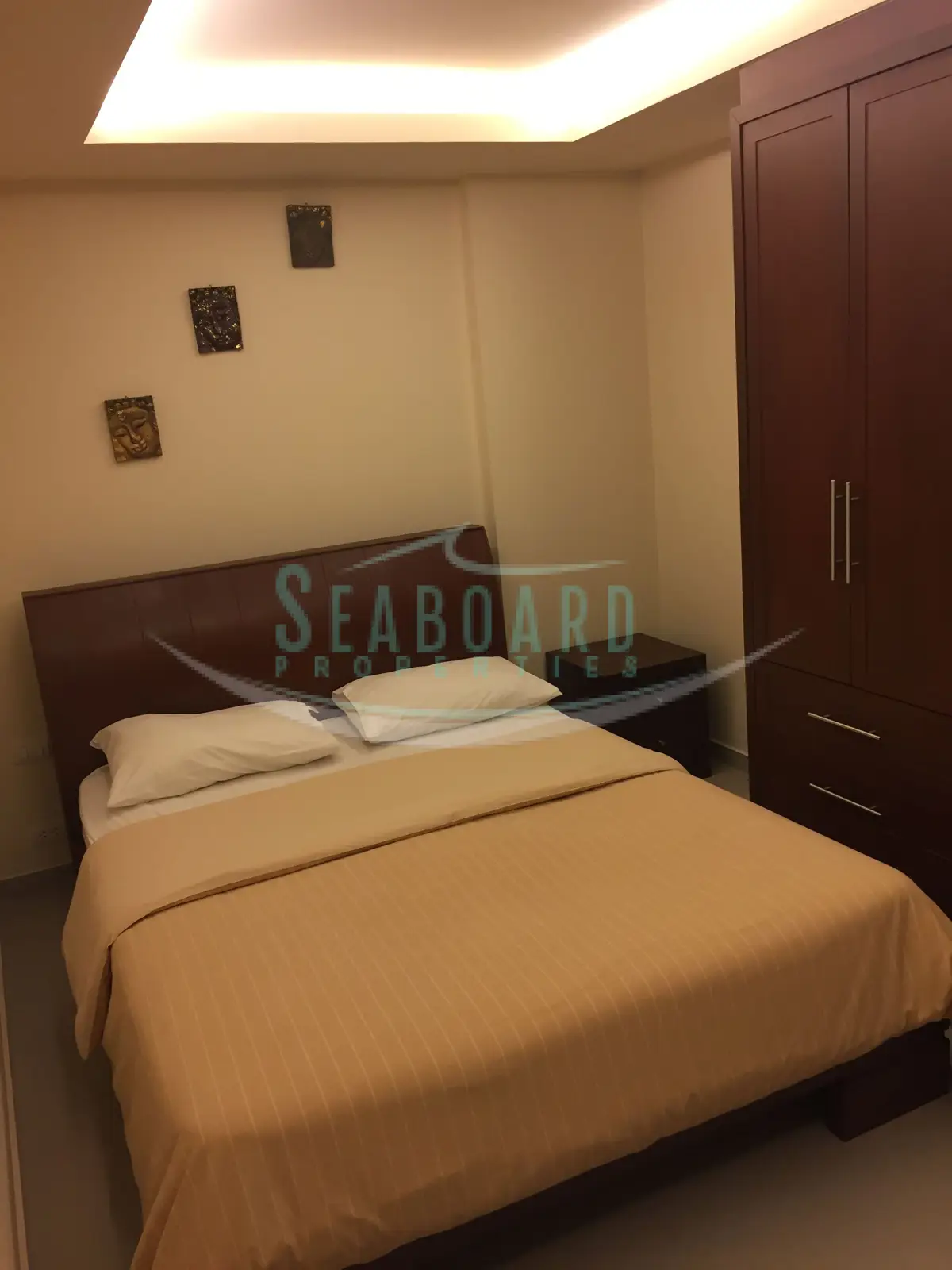 City Garden Pattaya, 2nd Road This complex has to be one of the best developments in Central Pattaya, as it has easy walking access to all locations and amenities in town - various Thai and International restaurants and eateries, cafes, nightlife, high street and market shopping, and set around 3 shopping malls with cinemas, bowling and many family fun activities. Pattaya beach is just 400 m away. Set on the 5th floor, this 2 bedroom apartment is fully furnished, fully air conditioned and has a well-proportioned European kitchen. Bathroom with shower and bathtub, large balcony towards Soi Bukhao. Facilities of the building: 24/7 security, communal swimming pool, key card access into the building, cleaning service, fitness, sauna, steam room, on-site restaurant, and laundry service.Facilities