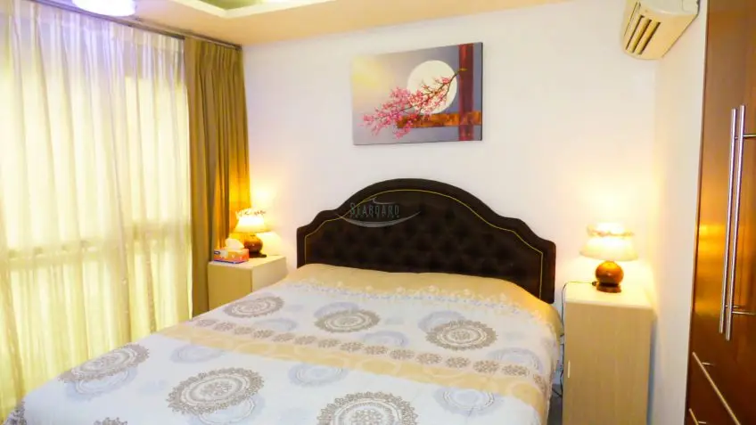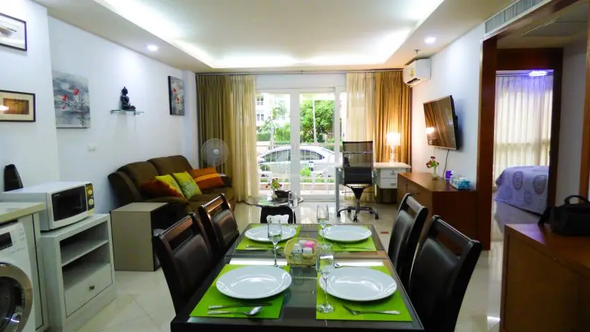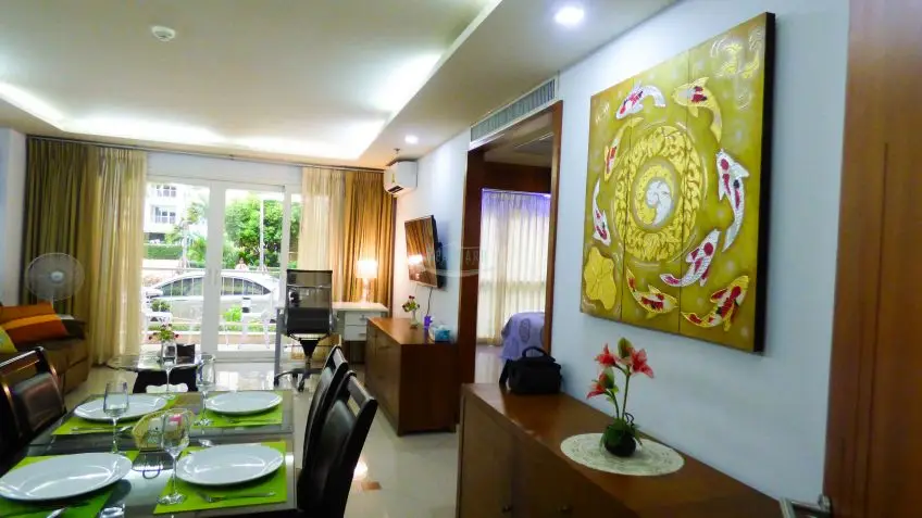 City Garden Pattaya A fine 2 bedroom apartment with balcony is located on floor 1, fully furnished, including a European kitchen with appliances and washing machine. Good sized lounge and dining area. Air-conditioning throughout. City Garden is located in the heart of Pattaya City, there are 5 low-rise buildings and providing very good access to all local amenities i.e. Pattaya Beach, baht bus routes, The Avenue Shopping Center, many shops and restaurants. There are also great facilities: Large communal swimming pool, 24-hr security gated access, key card system, fitness center, sauna & steam room, covered parking space, in-house management office with friendly staffs, in-house laundry hop and restaurant. The apartment is offered for sale at a very reasonable price, please contact us for more details and to arrange a viewing, now.Facilities