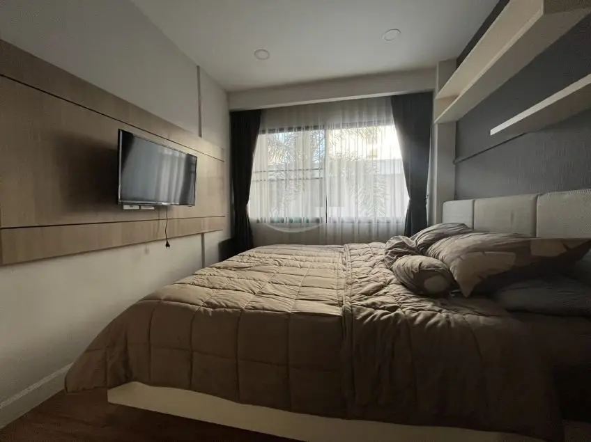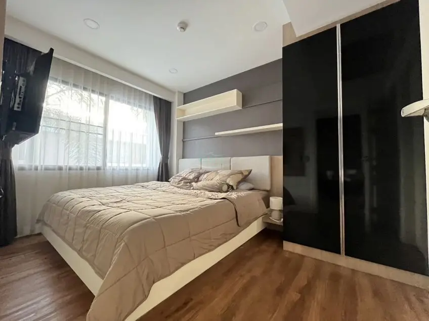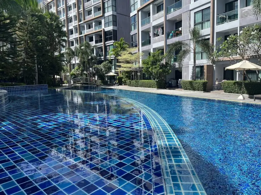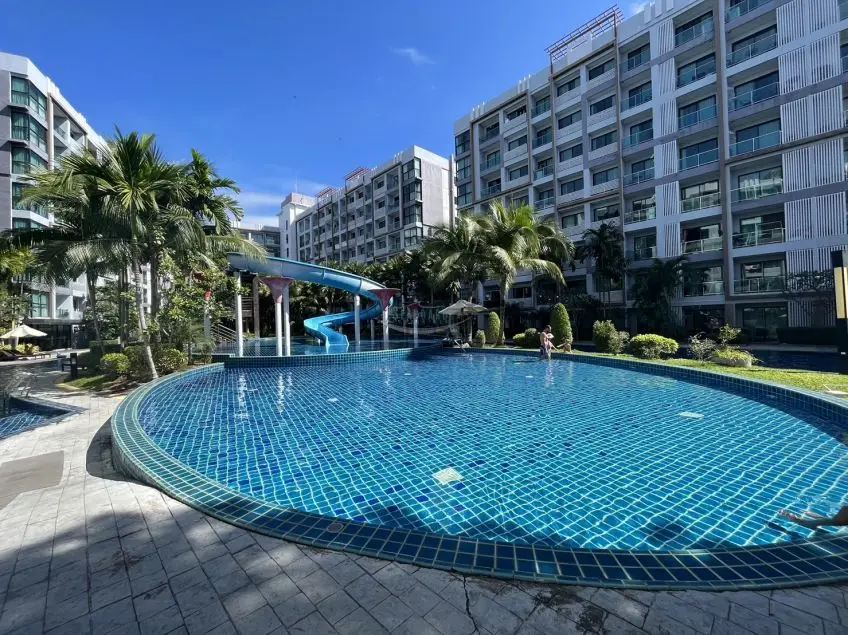Dusit Grand Park. This low-rise condominium complex is located off Thepprasit road and only a short drive from Jomtien Beach. Consisting of six buildings surrounding a huge lagoon pool with water slides, sundecks, and a relaxation area this place offers good on-site facilities. This modern one-bedroom apartment with a balcony is offered for sale fully furnished. It comes with a fitted European kitchen, built-in furniture, full air conditioning, quality bathroom with a walk-in shower. The condo is equipped with Free Cable and WIFI Internet is available at an additional charge. The building also has covered parking, 24/7 security, CCTV, a gym, and a playground. The development is only a few minutes walks to restaurants, Family Mart, laundry, and Rompho market. The title deed is held in Foreign name ownership with taxes and transfer fees shared equally. For more information and to arrange a viewing, please contact us now.Facilities