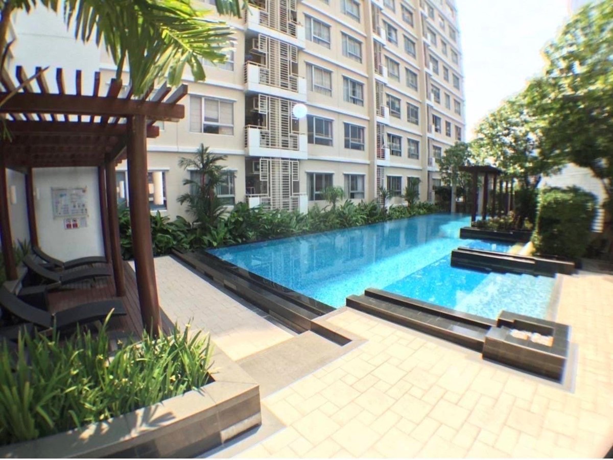 The condo has 1 bedroom and 1 bathroom with bathtub and a separate fully-equipped kitchen with a hob/hood, microwave, refrigerator, and washing machine. The property is for rent fully furnished and measures 51 sqm. with a pool view on the 8th floor.