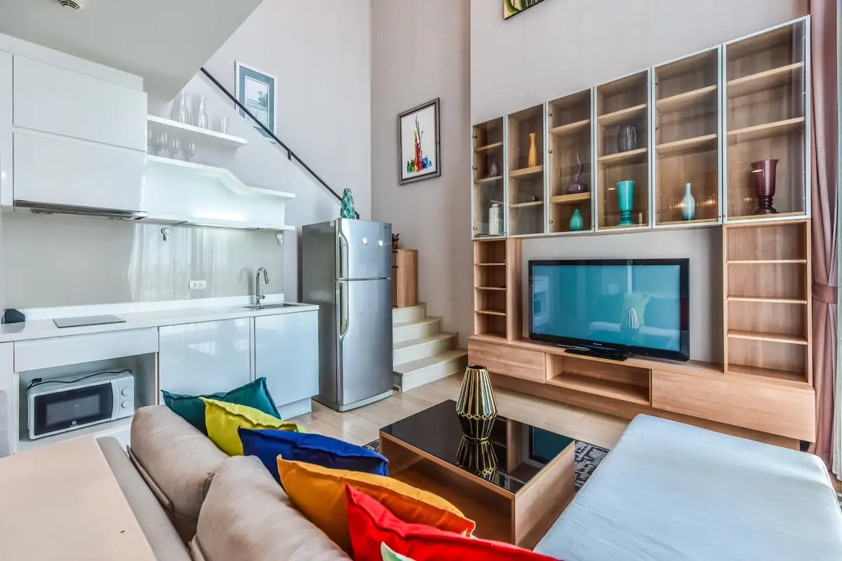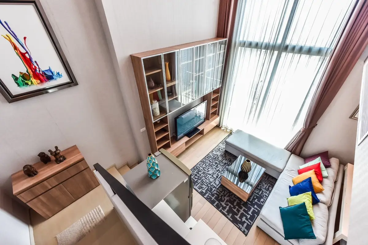 This is a nice duplex 2 bedroom condo for sale at Pyne By Sansiri. The property comes fully furnished, has 2 bedrooms, 2 bathrooms, measures 77 sqm. and is on the 18th -19th floor. Pyne By Sansiri has a swimming pool, gym, lounge, parking and security service.