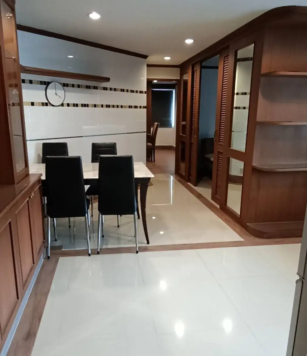This is a fully furnished condo for sale that has an area of 74 sqm (2 bedroom, 2 bathroom). The kitchen is well equipped with a dining table big enough for 4 people. The property is bright and airy and is situated on the 2nd floor of the building with a view of the swimming pool from the balcony. It is located in Beverly Tower which can be found at the end of the popular Sukhumvit Soi 11. This end of Sukhumvit Soi 11 is very quiet and has access to Sukhumvit Road, therefore it is only a 10 minute walk to Nana BTS Station or Sukhumvit MRT Station. This area is packed with Thai and international restaurants, bars, cafes and clubs.