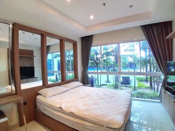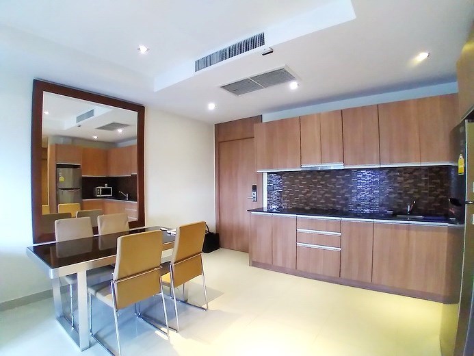 PATTAYA REAL ESTATE: Condominium for rent Na Jomtien, 2 bedrooms, 2 bathrooms, 63 sqm, fully furnished, European-style kitchen, garden and pool view, communal swimming pool, 24-7 Security