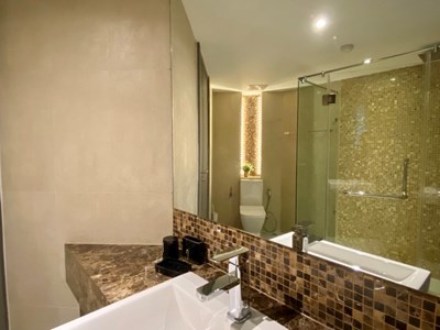 En-suite bathroom with glass shower cubicle with rainfall-type shower – 2 doors entry - for guest convenience