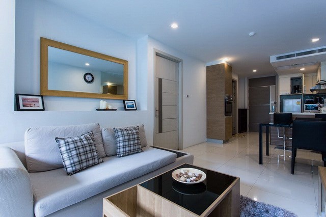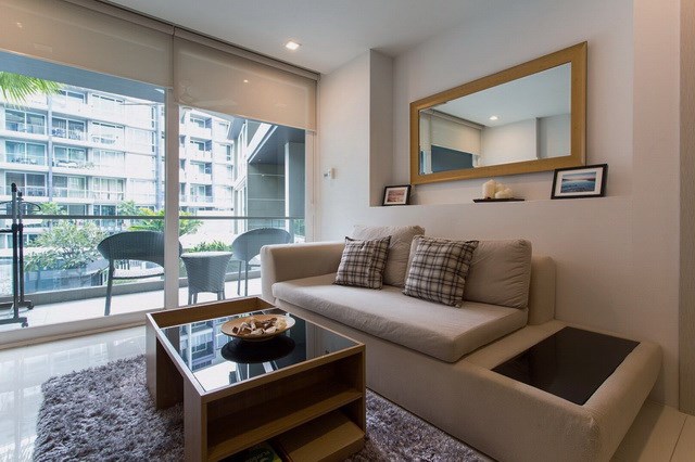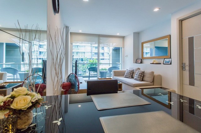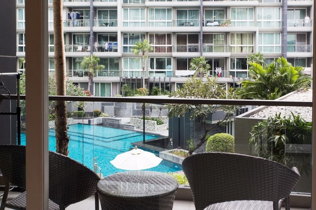 PATTAYA REAL ESTATE: Apus Condominium for Rent, 65 sqm, 1 bedroom, 1 bathroom, living room, European-style kitchen, fully furnished, balcony, swimming pool views, 24-7 Security.