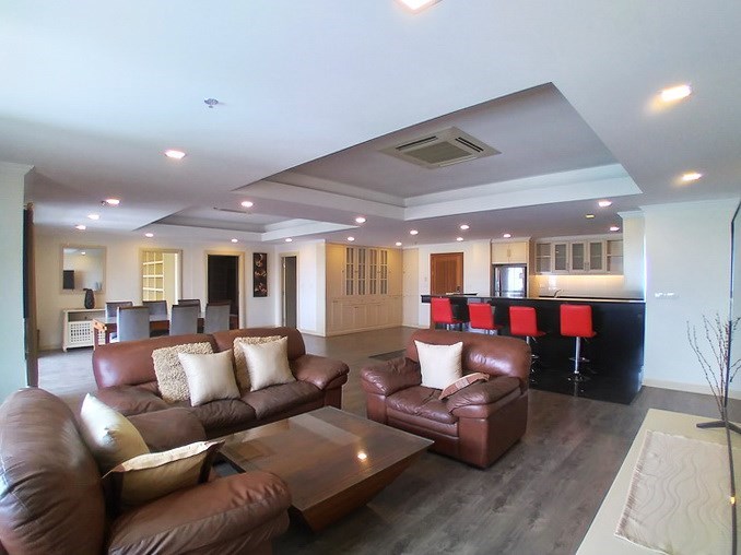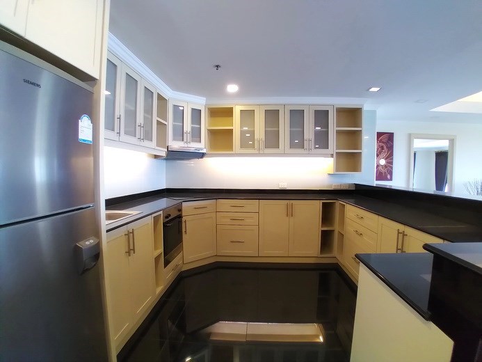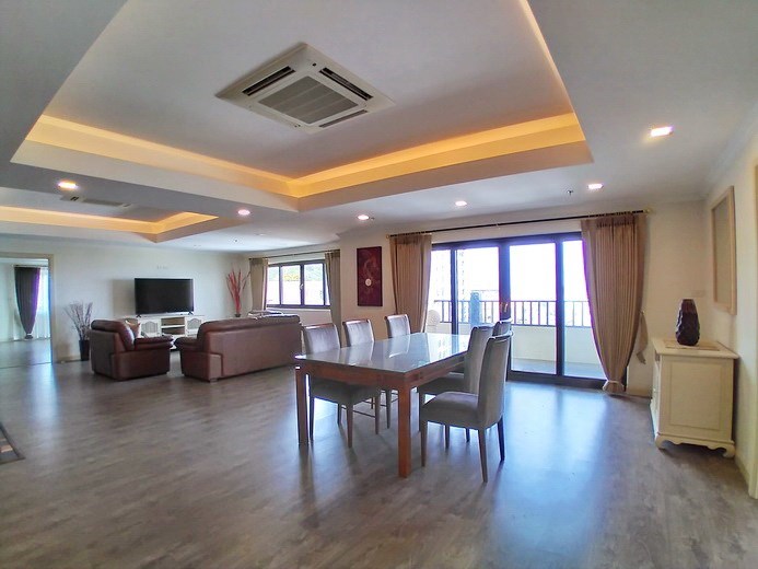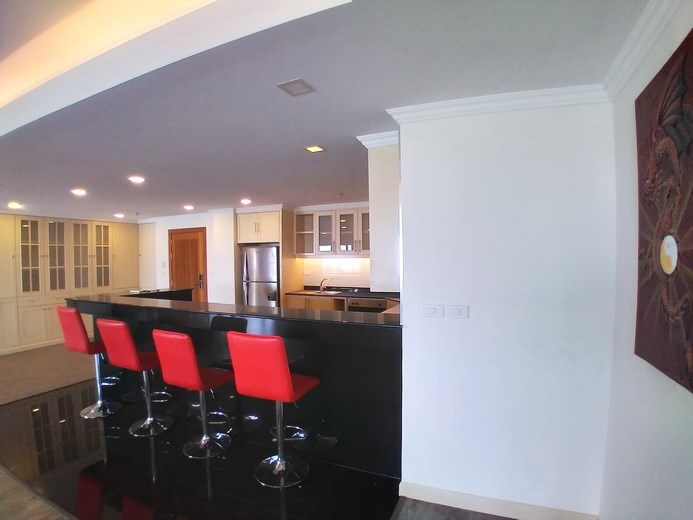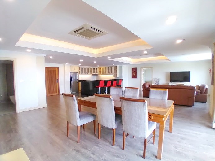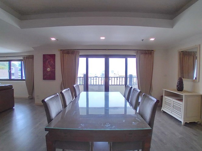 PATTAYA REAL ESTATE: Condominium for rent Pratumnak Pattaya, 213 sqm, top floor, 3 bedrooms, 3 bathrooms, European-style kitchen, fully furnished, balconies, city and partial sea view, 24-7 Security