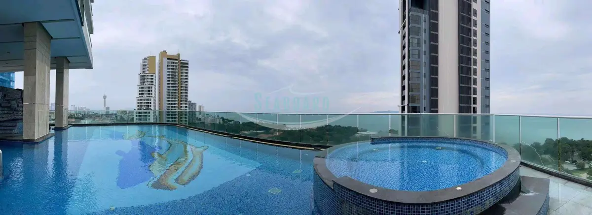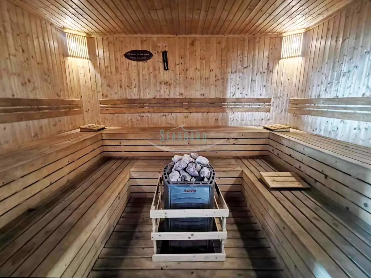 two infinity swimming pools, a gym, a sauna, and steam. etc.