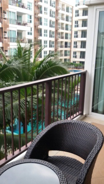 2 bedrooms apartment corner unit on 3rd floor , 1 bathroom, pool view, fully furnished, European Kitchen, large balcony, larage communal pool, gym, 24 hours security, located at Thappraya Soi 15, just 5 minutes from Jomtien Beach. This unit is in foreign name.