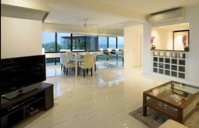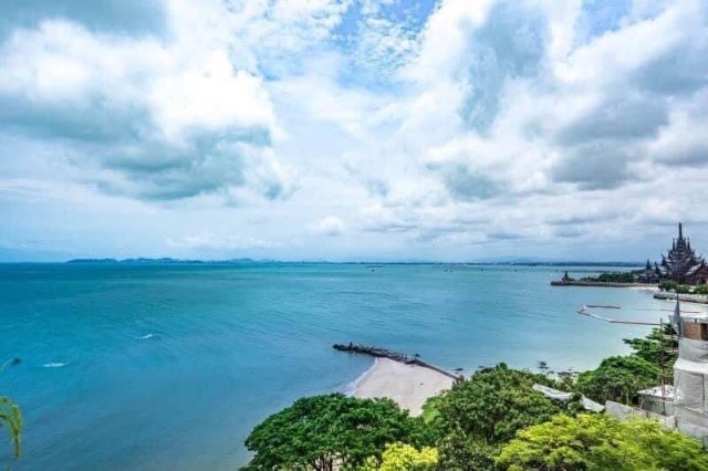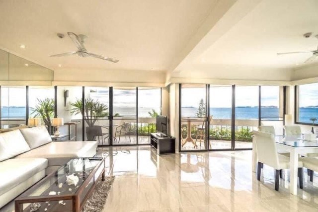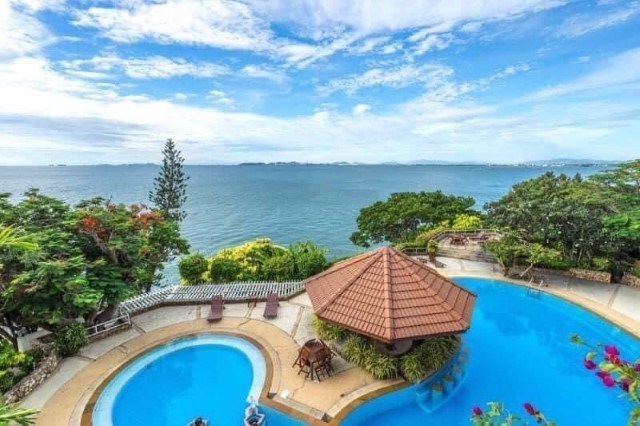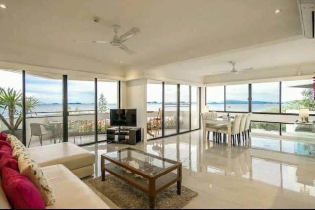 2 Bedrooms beachfront condo for sale at Garden Cliff Condominium, 2 bathrooms, living area 122 Sq.m., floor 3rd , sea view, large balcony, fully furnished, European Kitchen, 24 hour security, Communal swimming pool, tennis court, close to Wongamat Beach, minimart, restaurant.