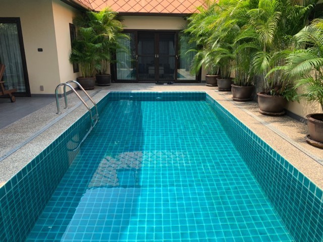 Privacy is guaranteed by a surrounding wall....and of course you got your private pool. There is a large public pool a one minute walk away.