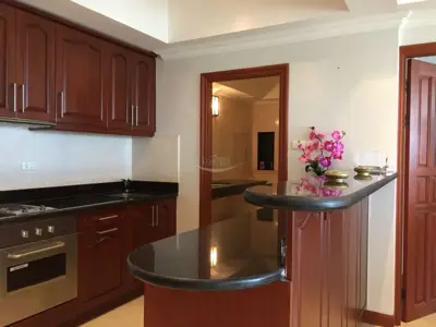 Grand Condotel Jomtien Beachfront location, directly on Dongtan Beach is this modernized 2-bedroom apartment. The floor area is 108m² and has been turned into a nice modern 2-bedroom apartment. It also has a European-style kitchen, luxury bathroom, light and airy living area, and a large balcony with views over the gardens and the sea. The apartment has quality A/Cs and will be sold with full furniture. The building has tennis courts, swimming pools, a gym, a sauna, direct beach access, and 24-hour security. This property is registered in a foreign name and transfer fees are split 50/50.