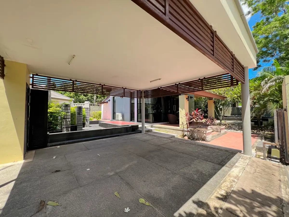 Outside, the garden area is beautifully landscaped, offering a peaceful outdoor living space complete with a BBQ area—perfect for hosting gatherings or enjoying quiet moments in nature. The large plot allows for future expansion if desired, with plenty of room for gardening or adding outdoor features. Additionally, the covered parking area can accommodate up to 2 cars, providing convenience and protection from the elements.