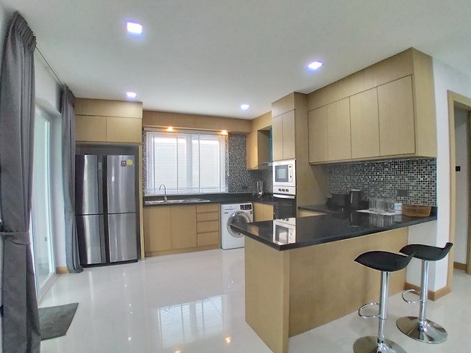 PATTAYA REAL ESTATE: House for rent East Pattaya with private swimming pool, land size 464 sqm, living area 180 sqm approx., 4 bedrooms, 3+1 bathrooms, European-style kitchen, fully furnished, garden, private swimming pool, carport, 24-7 security