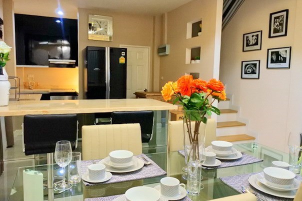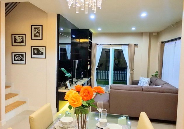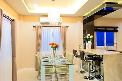 PATTAYA REAL ESTATE: House for rent Pattaya, land size 150 sqm, living area 120 sqm approx., 3 bedrooms, 2+1 bathrooms, European-style kitchen, fully furnished, carport, Communal swimming pool, Clubhouse, 24-7 Security