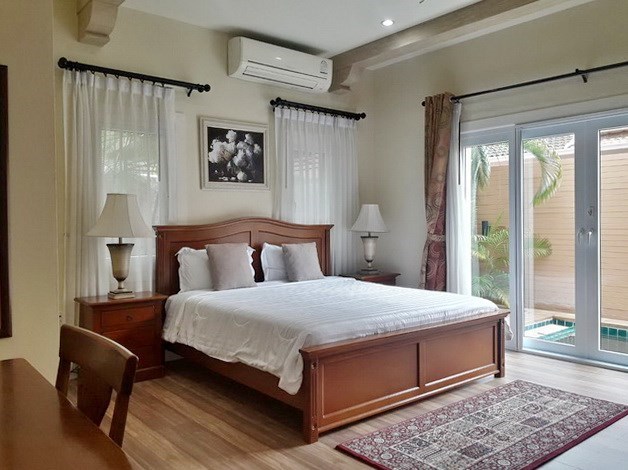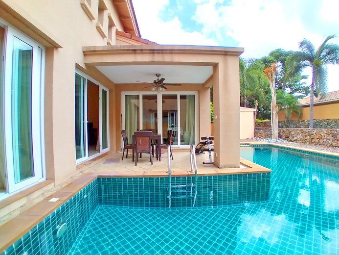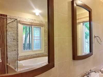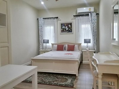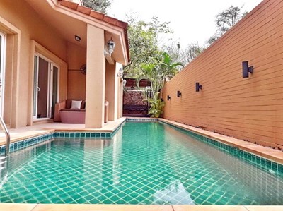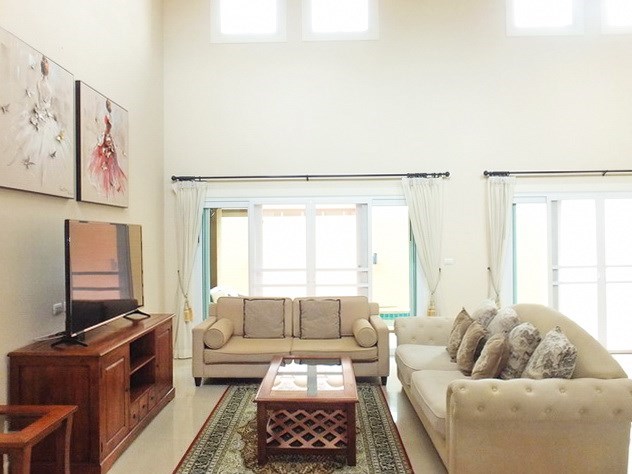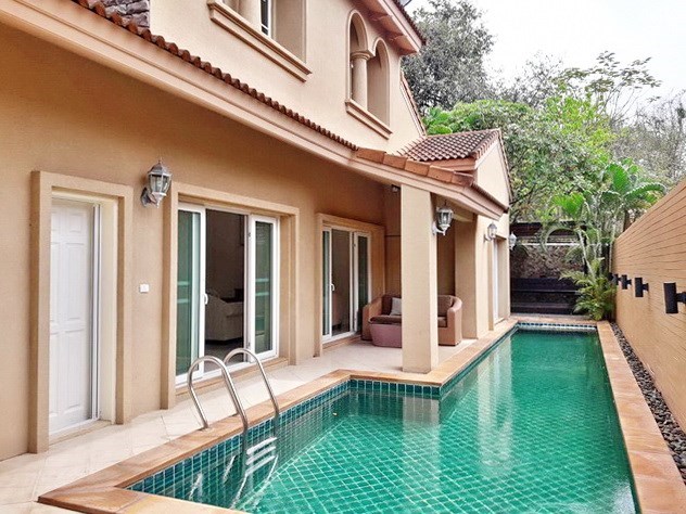 PATTAYA REAL ESTATE: House for Rent East Pattaya, land size 508 sqm, living area 200 sqm, 3 bedrooms, 4 bathrooms, maid’s room, European-style kitchen, fully furnished, garage, private swimming pool, garden, gymnasium, 24-7 security