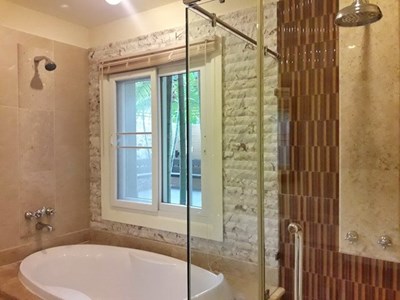Guest bathroom with glass shower cubicle - 2 door entry - convenient for outside poolside shower