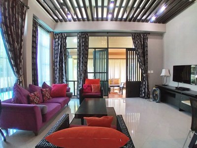 PATTAYA REAL ESTATE: The Village Horseshoe Point, house for rent, land size 612 sqm, living area 180 sqm, 2 Bedrooms, 2 Bathrooms, Office room, European-style kitchen, fully furnished, private swimming pool, garden, Horseshoe Point Sports facilities, 24-7 Security