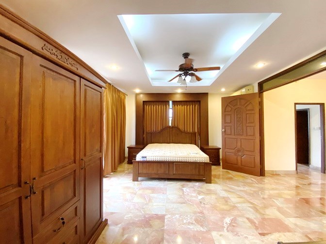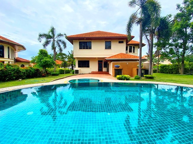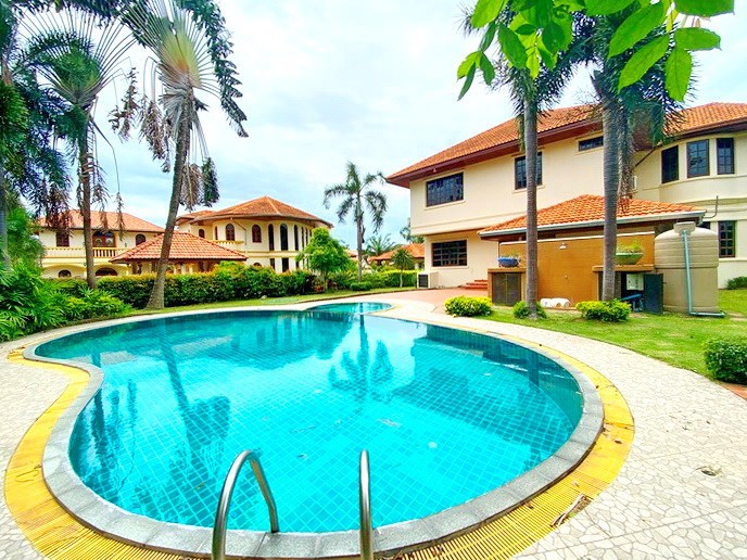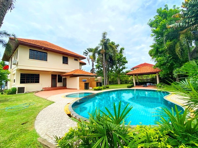 PATTAYA REAL ESTATE: Pool villa for rent East Pattaya, land size 800 sqm, living area 280 sqm approx., 4 bedrooms, 5 bathrooms, 1 bedroom/Office, European-style kitchen, lawn garden, private swimming pool, sala, additional maid’s quarters, carport, 24-7 Security