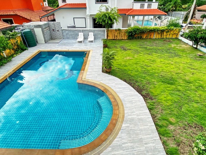 PATTAYA REAL ESTATE: House for rent Jomtien, 2-storey detached pool villa for rent, land size 640 sqm, living area 250 sqm approx., 4 bedrooms, 3 bathrooms, small room, fully furnished, European-style kitchen, large garden, private swimming pool, carport