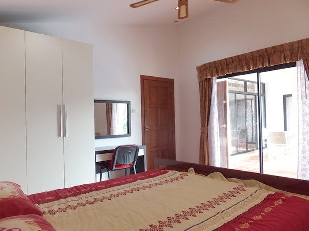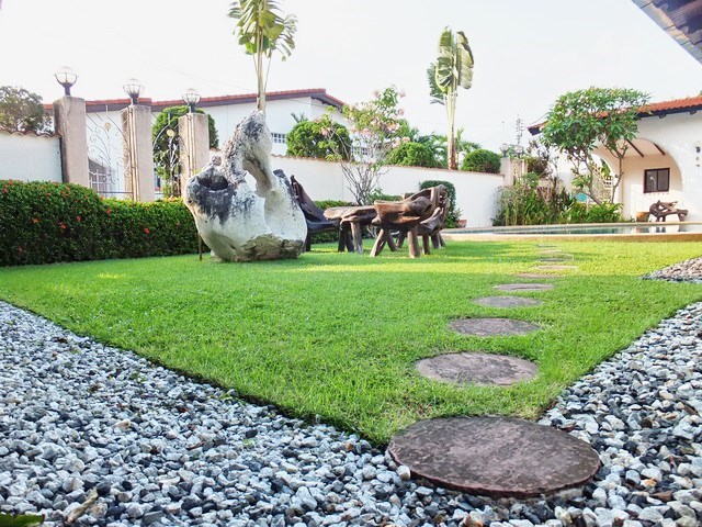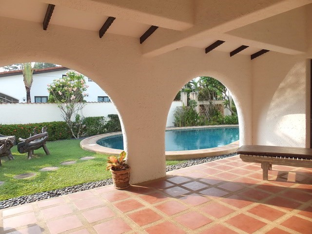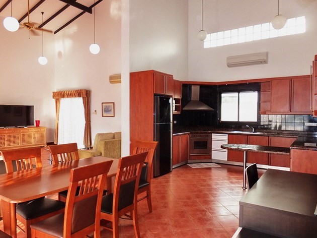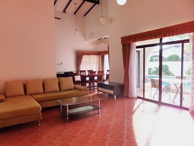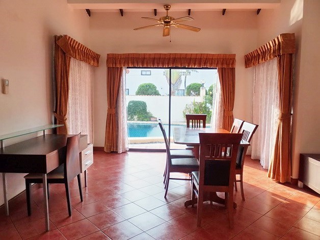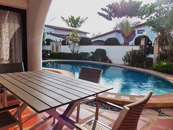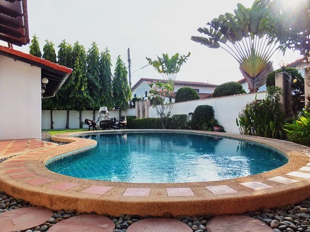 PATTAYA REAL ESTATE: House for rent East Pattaya with private swimming pool, land size 486 sqm, living area 220 sqm approx., 3 bedrooms, 2 bathrooms, Private Swimming Pool, lawn garden, fully furnished, 24-7 security