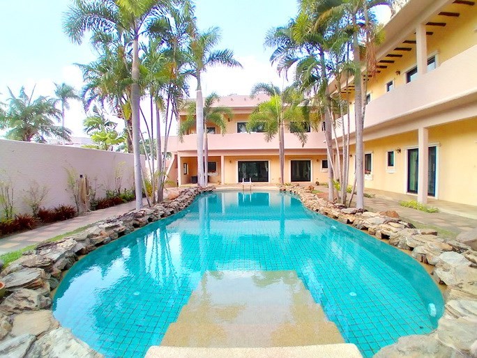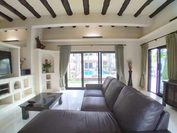 Imposing Mediterranean-style Single Floor House for rent direct to the communal swimming pool and garden, within easy access to motorways, golf courses and the international schools of Pattaya