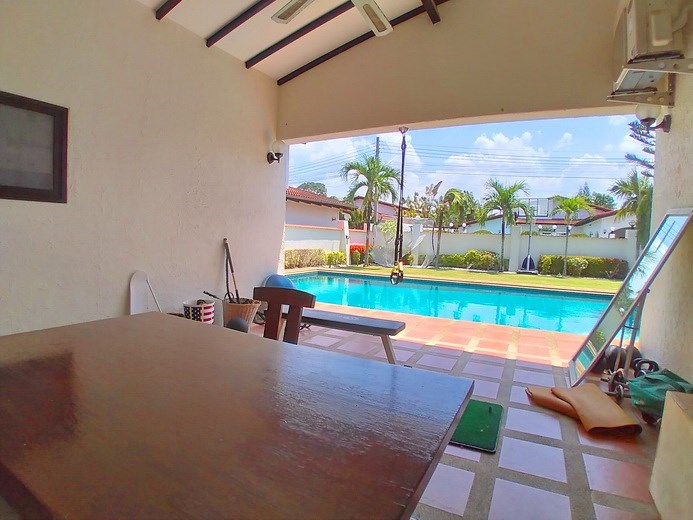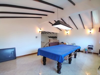 PATTAYA REAL ESTATE: House for rent East Pattaya with private swimming pool, land size 500 sqm, living area 300 sqm approx., 4 bedrooms, 4 bathrooms, private swimming pool, lawn garden, fully furnished, mezzanine floor with pool table, 24-7 security