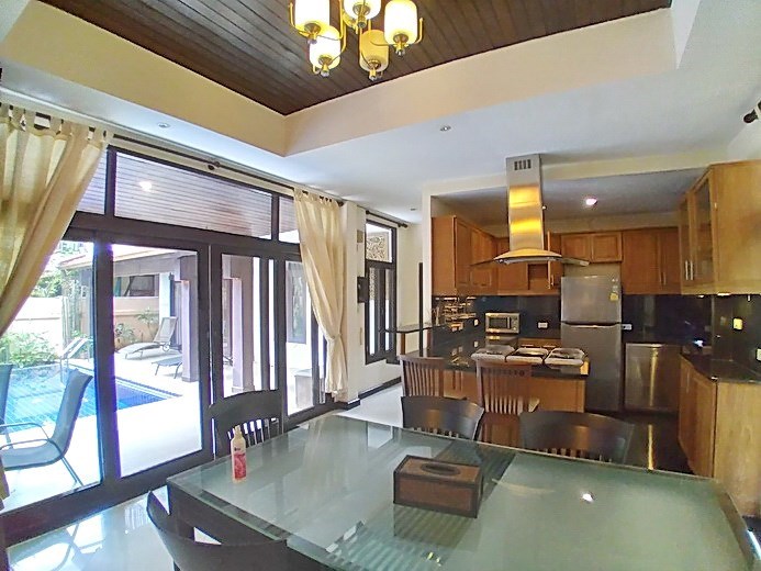 PATTAYA REAL ESTATE: Pool villa for rent Mabprachan Pattaya, land size 340 sqm, living area 200 sqm approx., 3 bedrooms, 3+1 bathrooms, European-style kitchen, garden, private swimming pool, carport, 24-7 Security