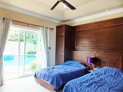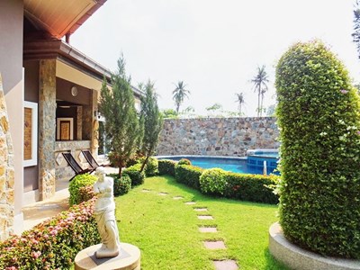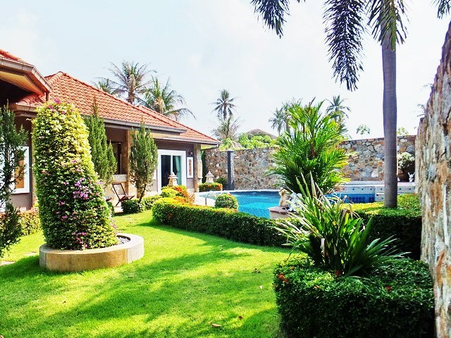 PATTAYA REAL ESTATE: Pool villa with separate Guest House for rent Pattaya, high quality construction, land size 684 sqm, living area 246 sqm, 3+1 bedrooms, 4+1 bathrooms, Guest house, European-style kitchen, fully furnished, tropical gardens, Private swimming pool