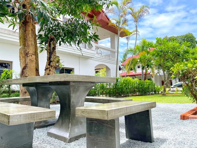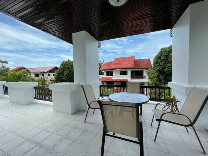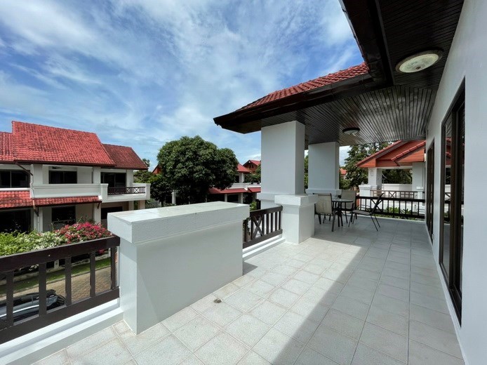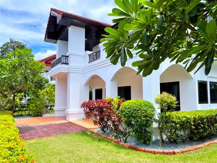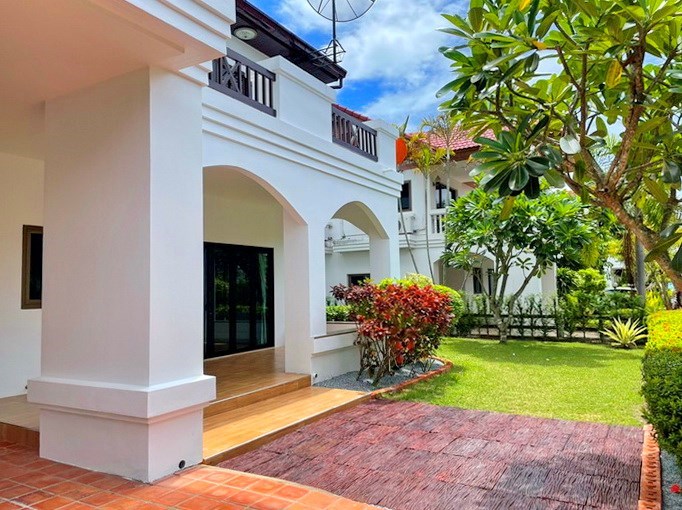 PATTAYA REAL ESTATE: House for rent Pattaya Ban Amphur, land size 296 sqm, living area 300 sqm approx., 3 bedrooms, 2+1 bathrooms, Office, European-style kitchen, garden, additional maid’s quarters, carport, communal pool