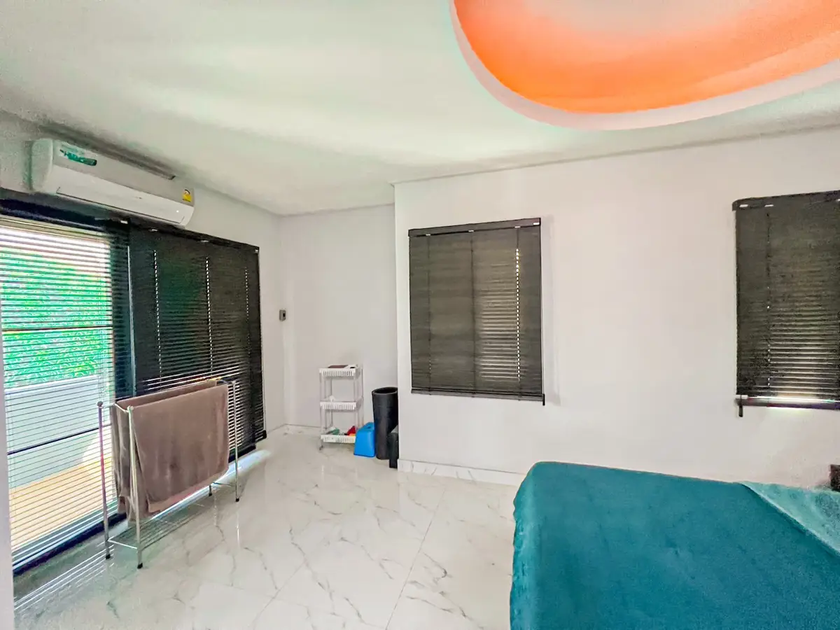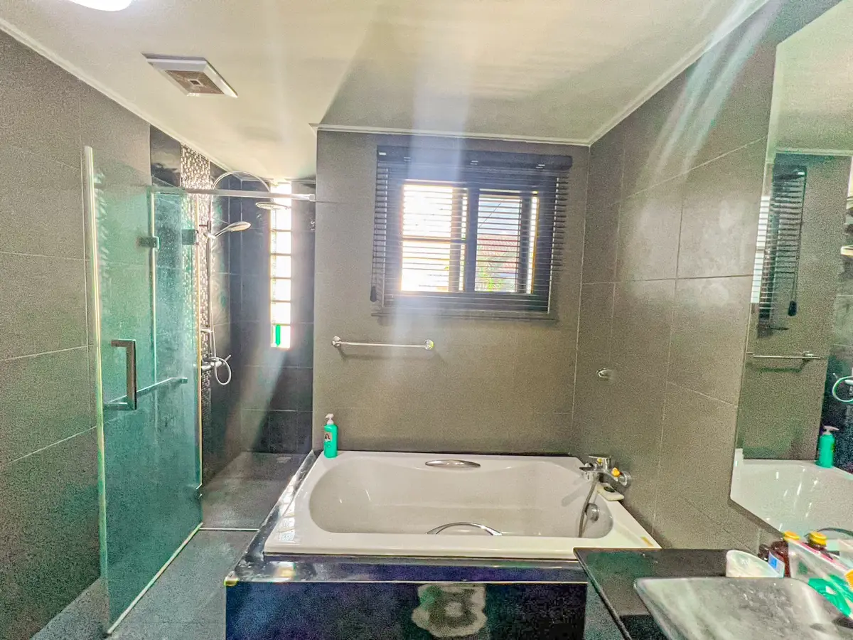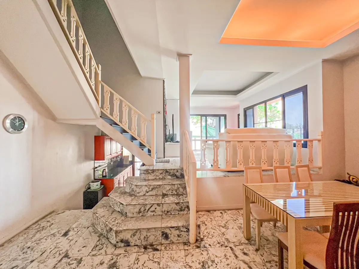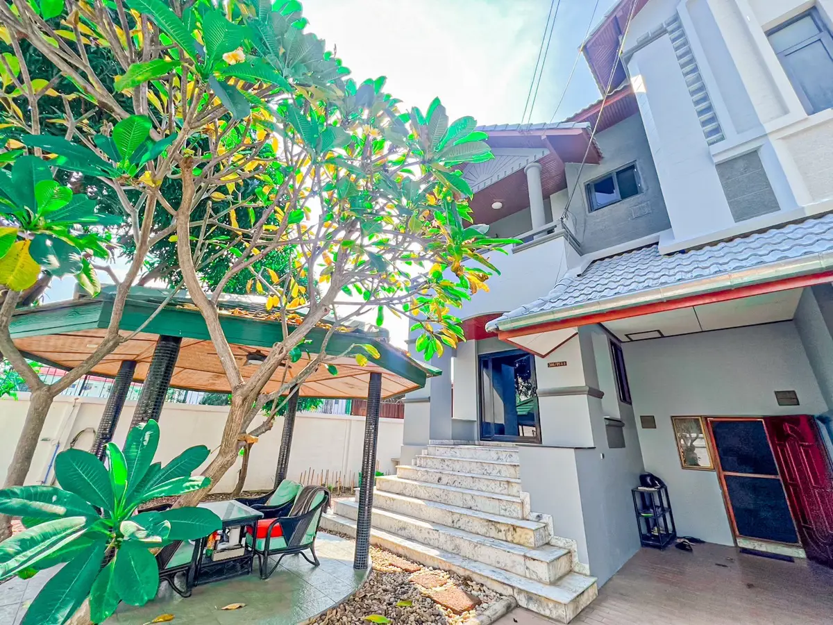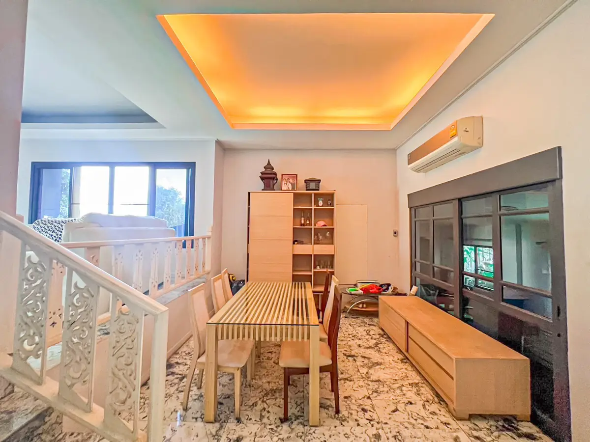 House Details: The semi-detached house comprises four bedrooms, with two of them being en-suite, providing privacy and comfort for the occupants. Being a corner unit situated in a cul-de-sac, it offers a tranquil and quiet living environment. The property boasts a nice garden area that includes a "sala" (a traditional Thai pavilion) and a BBQ spot, along with a shower. Additionally, the extra land available on the premises allows for the potential construction of a private pool, enhancing the property's appeal for those seeking personalized leisure amenities.