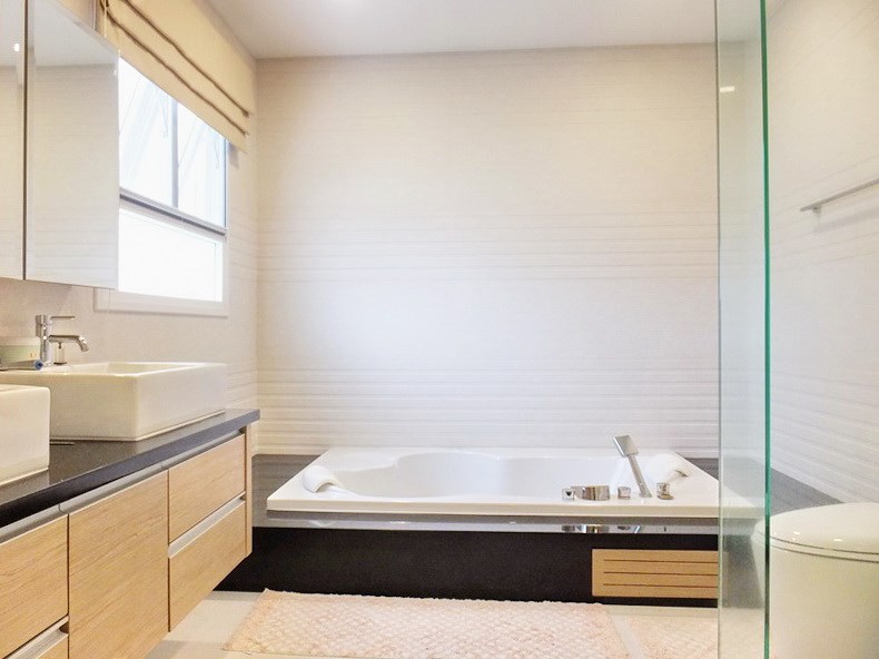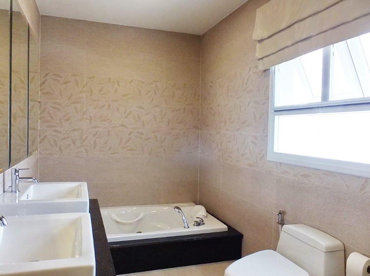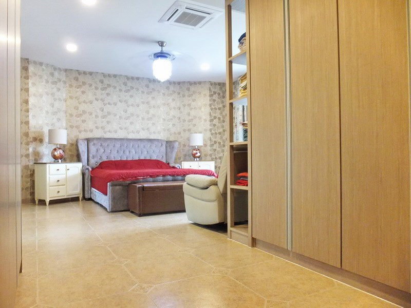 PATTAYA REAL ESTATE: House for Sale East Pattaya with private swimming pool, land size 1,000 sqm, living area 256 sqm approx., 4 bedrooms, 4+1+1 bathrooms, European-style kitchen, additional Thai kitchen, fully furnished, garden, private swimming pool, Carport, 24-7 security, investment tenant