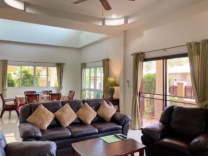 PATTAYA REAL ESTATE: House for sale East Pattaya, land size 428 sqm, living area 150 sqm, 3 bedrooms, 2 bathrooms, fully furnished, garden - corner plot, communal swimming pool, 24-7 security