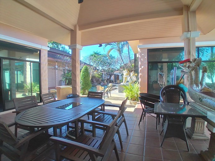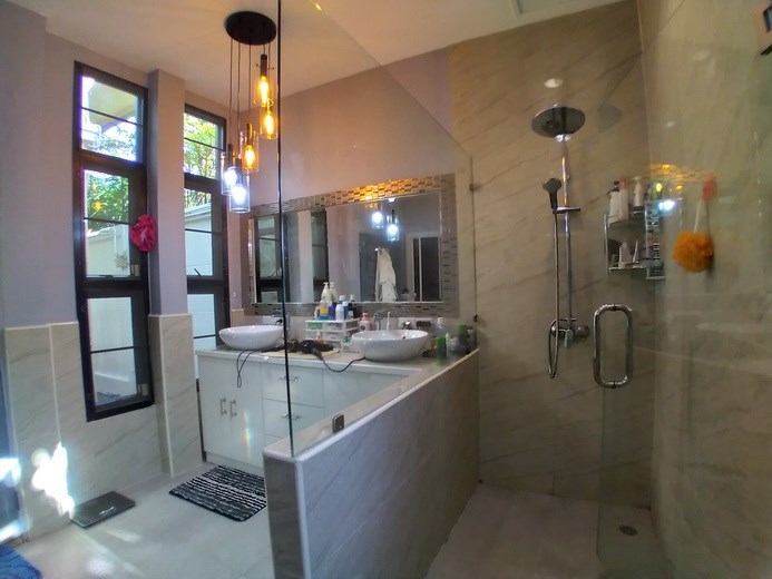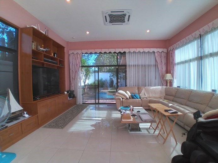PATTAYA REAL ESTATE: Pool villa for sale East Pattaya, land size 796 sqm, living area 200 sqm approx., 3 bedrooms, 2+1+1 bathrooms, built-in kitchen, tropical garden, private swimming pool, built-in furniture, garage, 24-7 Security.