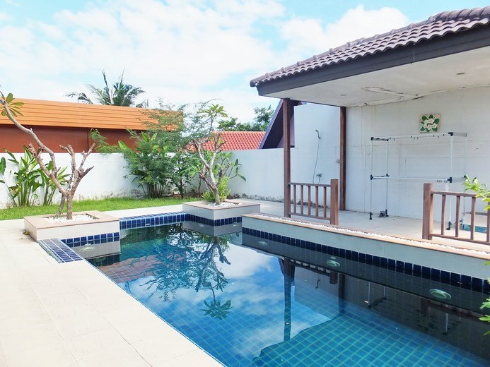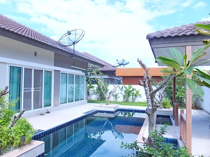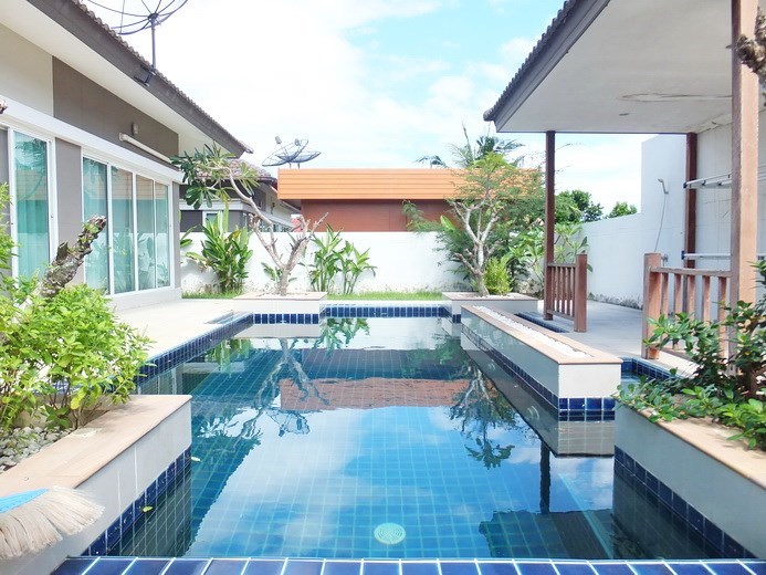 PATTAYA REAL ESTATE: Pool villa for sale, land size 472 sqm, living area 165 sqm, 3 bedrooms, 2 bathrooms, European-style kitchen, un-furnished, private swimming pool, garden, carport, 24-7 security