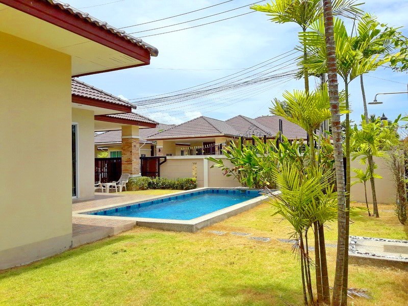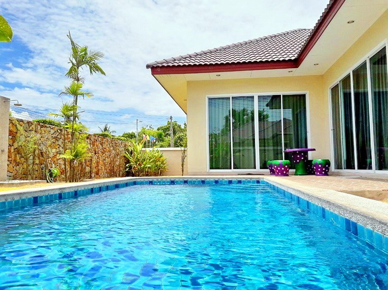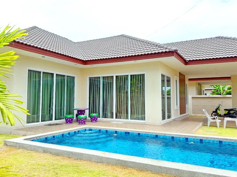 PATTAYA REAL ESTATE: Pool villa for sale Huay Yai, land size 400 sqm, living area 180 sqm, 3 bedrooms, 2 bathrooms, lawn garden, private swimming pool, carport, 24-7 security