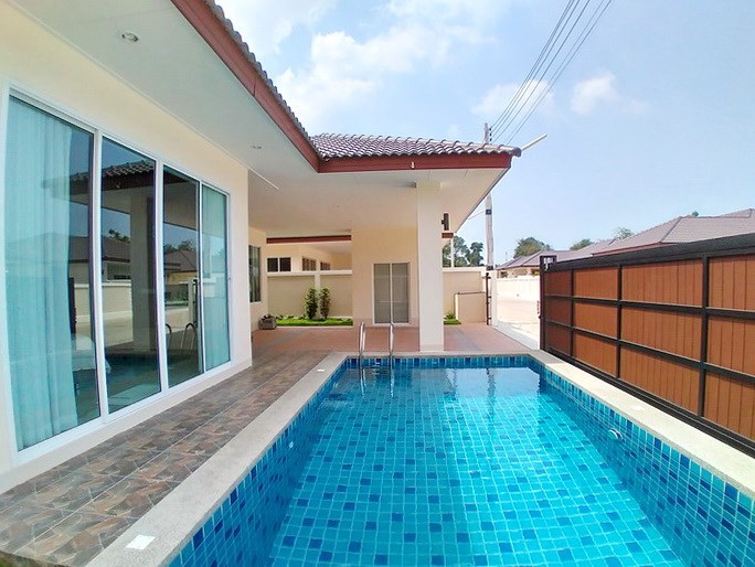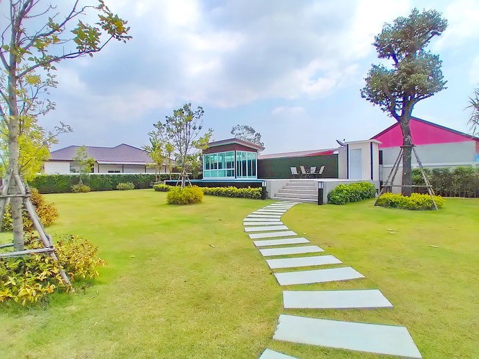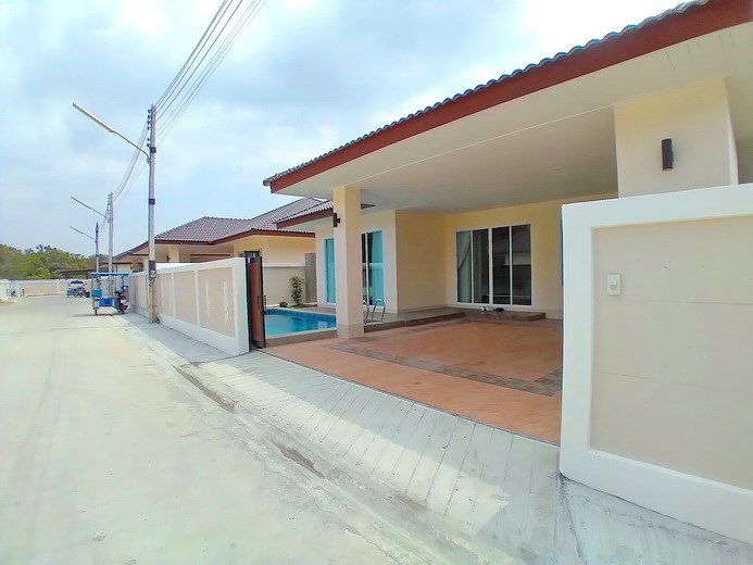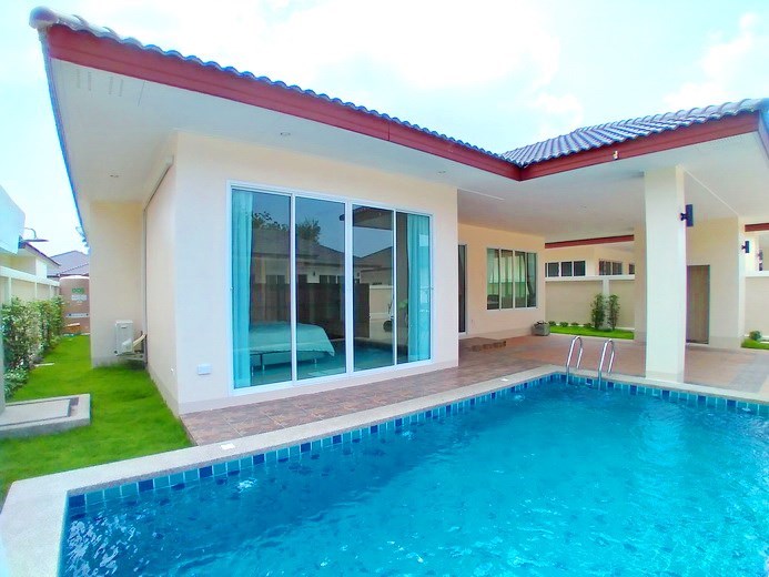 PATTAYA REAL ESTATE: Brand New - modern Pool villa for sale Huay Yai, land size 270 sqm, living area 120 sqm, 3 bedrooms, 2 bathrooms, lawn garden, private swimming pool, carport, 24-7 security