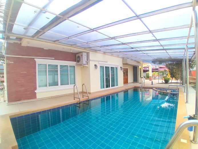 PATTAYA REAL ESTATE: Pool villa for sale Mabprachan Pattaya, Soi Siam Country Club area, land size 524 sqm, living area 250 sqm, 4 bedrooms, 4 bathrooms, European-style kitchen, outside Thai kitchen, built-in furniture only, private swimming pool, tropical garden, balcony