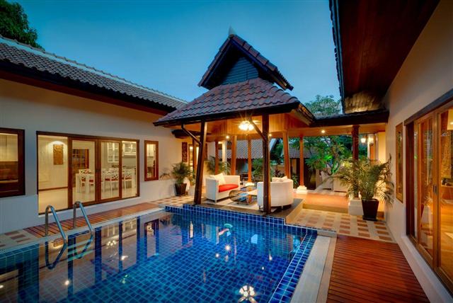 Stunning 3 bedroom, 3 bathroom Thai-Bali style home on 400 sqm (100 t/wah) of land. Large private pool, landscaped tropical gardens with lighting.