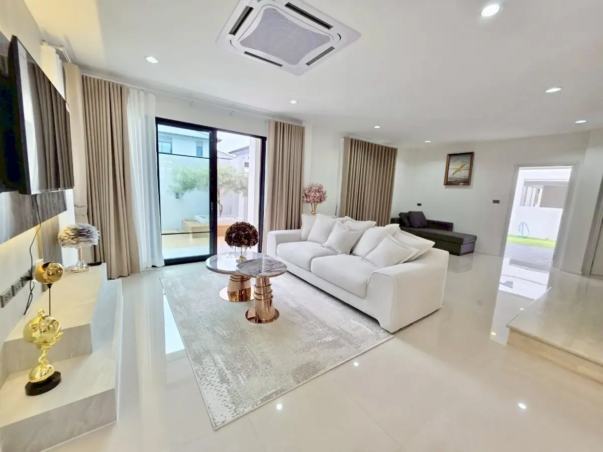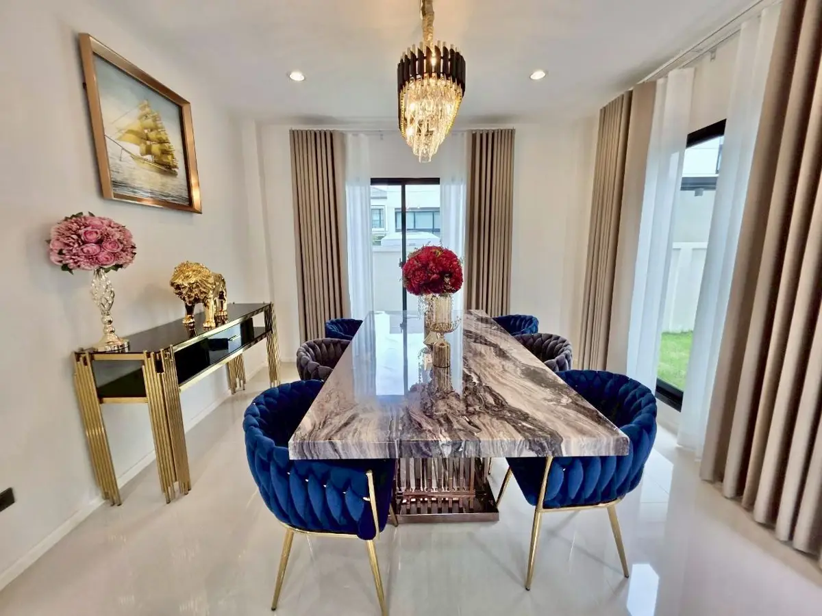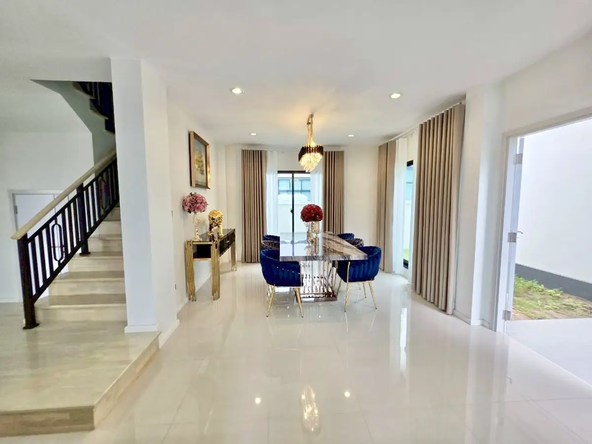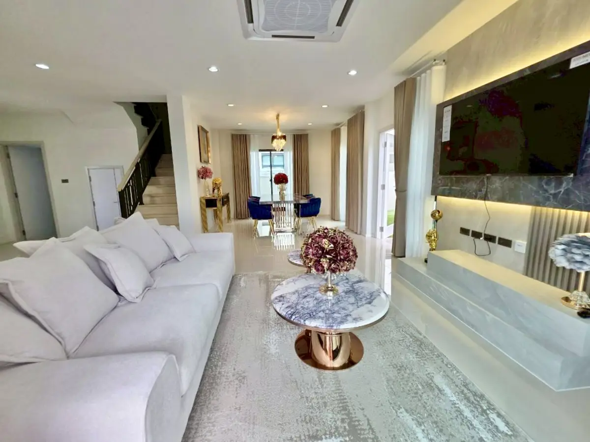 Located in one of the most prestigious communities of Ban Chang, surrounded by parks and ponds at the Eastern Star Golf Club, this brand new, modern home will not disappoint those looking for the best of luxury living. The house is furnished to highest standards and ready to move in on July 1st., 2026. Until then there is a tenant agreement you can take over paying 70,000 THB/month rent. Eastern Star golf community offers an array of activities and sports facilities, parks, ponds, all set in a serene and safe environment with 24 hour security. The local beaches and seafood restaurants are only a short drive away, as well as GIS and REPS private schools, shopping at Tesco and Robinson Mall, restaurants and pubs nearby and all else that you need. U-Tapao airport is also not far, and if you crave a taste of the city lights Pattaya is only a 40 minute drive on the new motorway extension. Also Koh Samet with its beautiful white sand beaches is a short distance away, for your weekend escapes. This modern and newly built property is also being offered for sale for anyone interested please inquire.