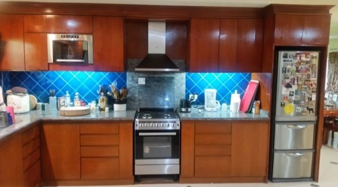 4 bedrooms, 4 bathrooms, washer and dryer, freezer, complete European kitchen including dishwasher.
