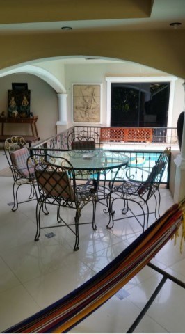 Beautiful house with landscape garden and private swimming pool, living area 325 Sqm, very private, land size 312 Sqw (1248 Sqm) with adjoining 313 Sqw ( 1252 Sqm) garden and designated building plot.