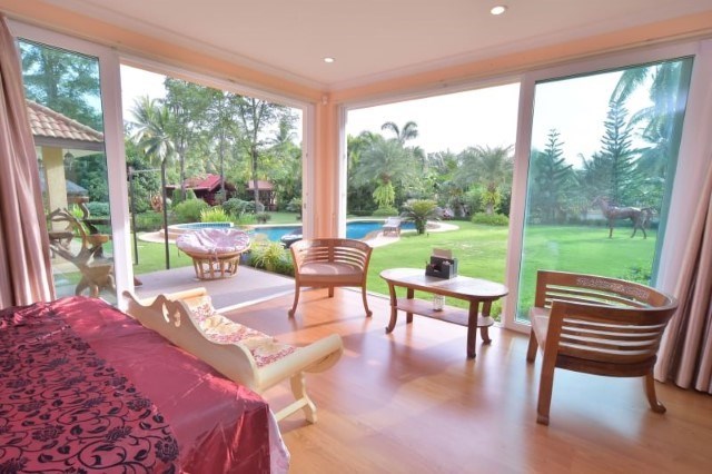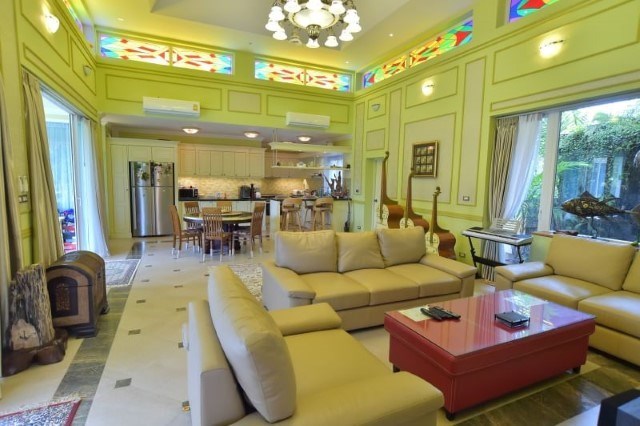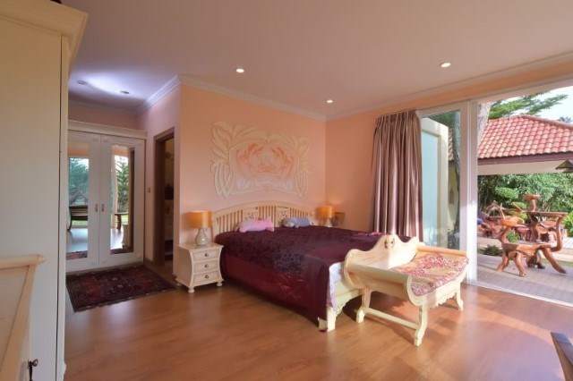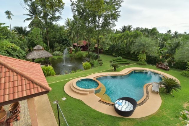 Family house for sale at Huay Yai with large plot of land 1.39 Rai( 3,160 Sqm) and private swimming pool, 5 bedrooms, 5 bathrooms, The home has a large roof top terrace with a cozy room that is perfect for a home office or maid's room. There is also a fully self contained bungalow at the bottom of the garden making it a perfect place for guests.