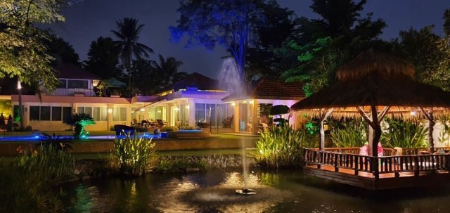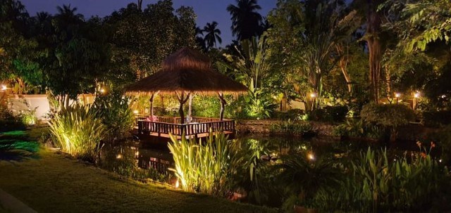The enter the property along an extremely long driveway that leads to the stunning gardens, the manicured lawn area at entrance to the swimming pool and beyond to the private lake full of huge fish surrounded by huge trees and tropical plants boasting an array of fruits from Mango to Banana and more!
