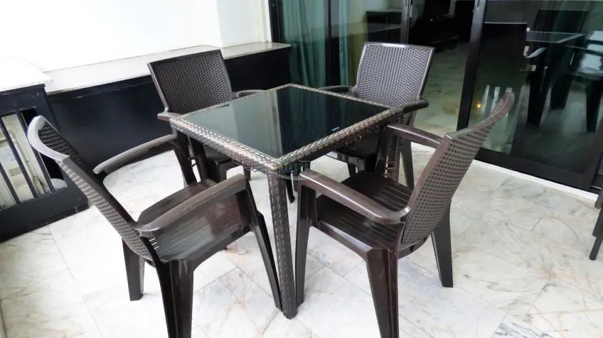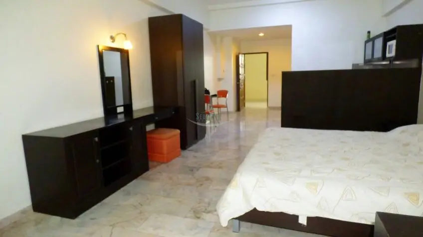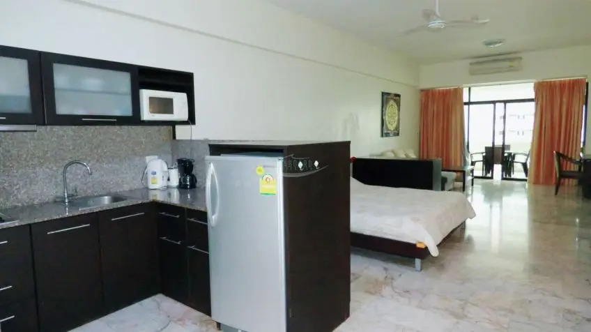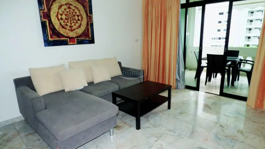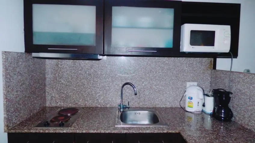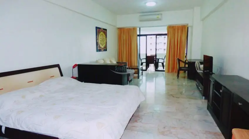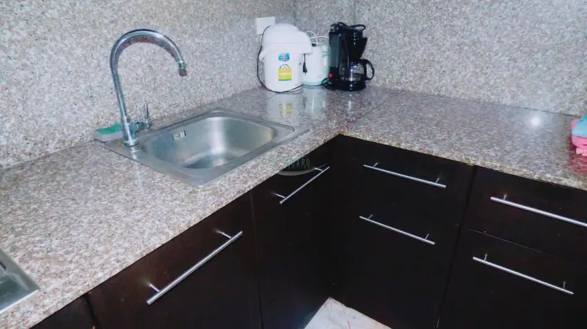 Jomtien Complex Spacious one Bedroom apartment with a balcony, situated high up on the 15th floor with some sea view from its balcony. The apartment is fully furnished and features marble flooring throughout, fitted European kitchen, air conditioning and hot water in the bathroom. This apartment is also equipped with Cable TV and WIFI connection is available from the building at extra charge. The building has 24-hour security, a communal pool, tennis courts, fitness room, sauna, and covered parking. Offered for rent with a minimum of 6-month contract at 20,000 Baht, 12 month contract at 18,000 Baht per month. For more information, please contact us now.Facilities