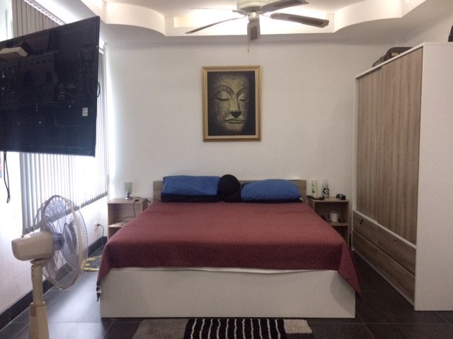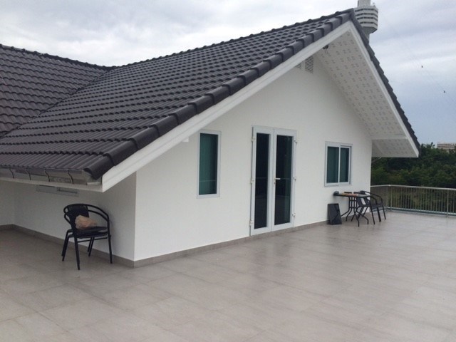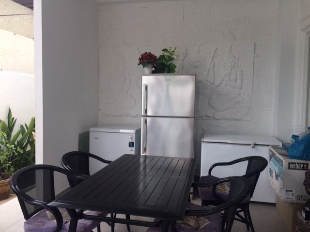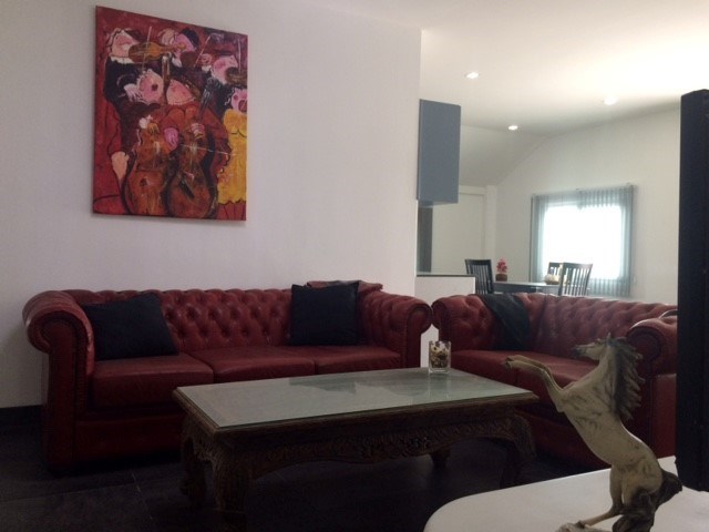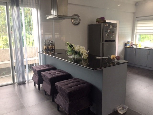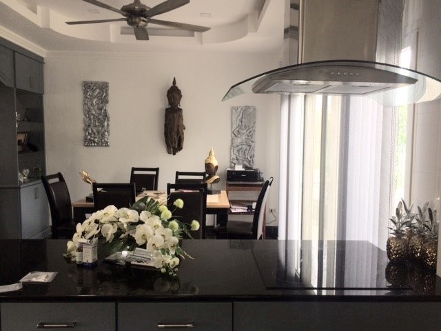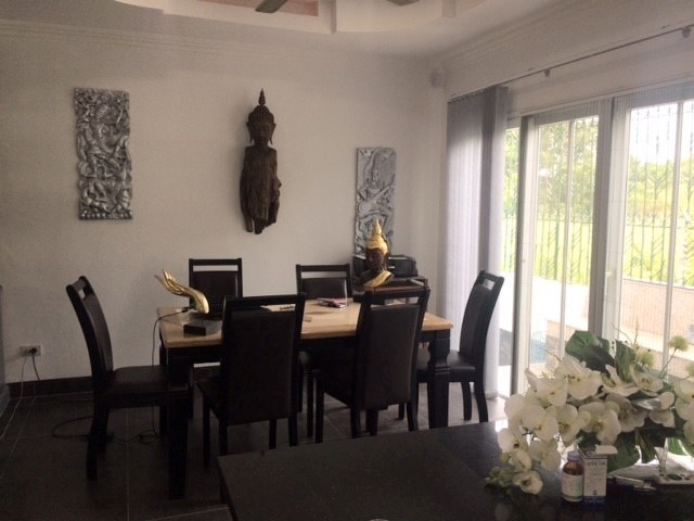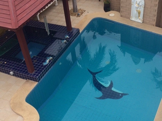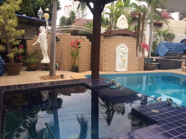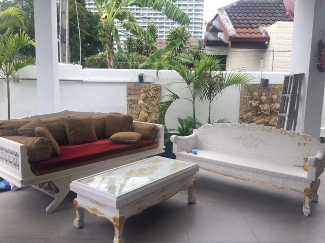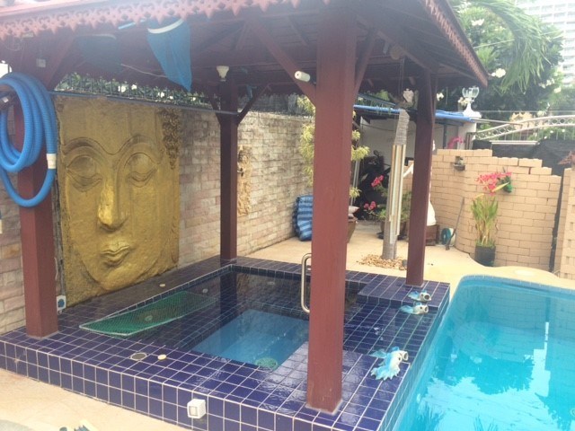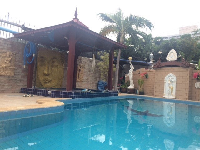Located behind PanPan Restaurant (200 m from taxi route and Foodmart, 300 meter to Dongtan Beach) in a gated beachfront community, 24 hour security, 6 bedrooms house with private swimming pool, 4 bathrooms,2 living room, European & Thai Kitchen, air cons, sauna, maintenance only 6,600 Baht per year. Completely quiet!